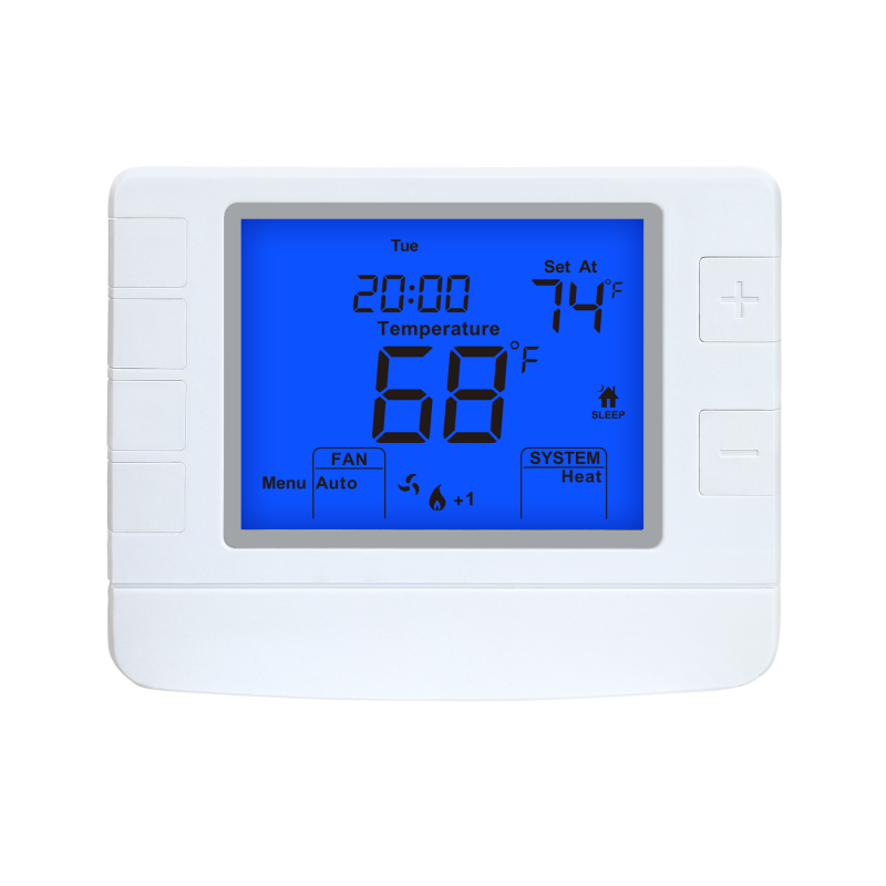 Ce thermostat est parfaitement adapté aux pompes à chaleur à source d'air industrielles, où le contrôle précis de la température et l'efficacité énergétique sont essentiels. Dans les environnements industriels à grande échelle, le thermostat STN2320 aide à optimiser les performances des pompes à chaleur, réduisant les coûts d'exploitation et améliorant la longévité du système. Sa couleur blanche et son design élégant le rendent facile à installer et esthétiquement compatible avec les systèmes de CVC modernes. Le produit prend en charge les étages C/C pour une configuration de 2 chauffages et 1 refroidissement, ce qui est idéal pour les configurations de pompe à chaleur complexes qui nécessitent plusieurs étages de chauffage ou des options de chauffage de secours.