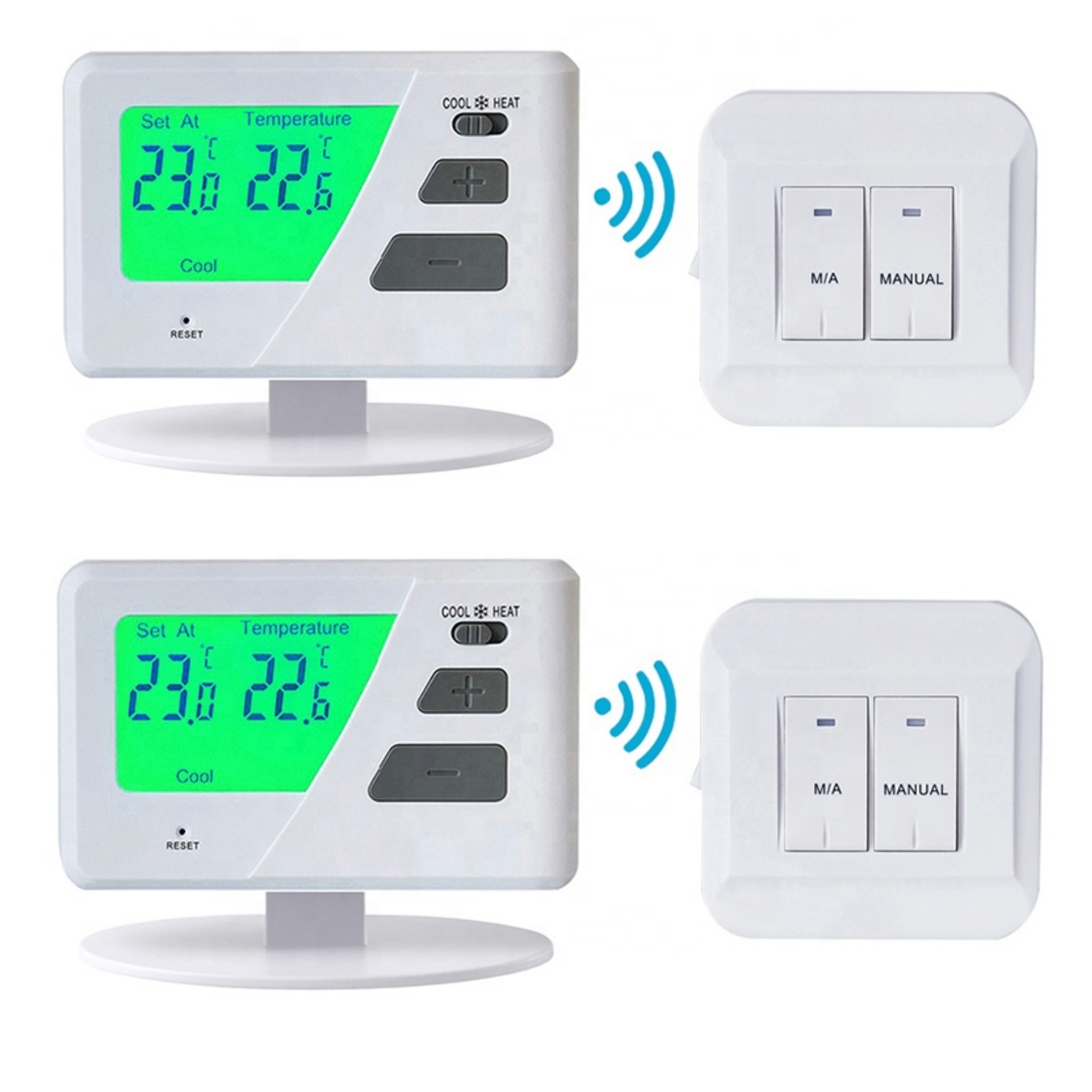 Ce thermostat de chambre sans fil est parfait pour de nombreuses occasions et scénarios d'application.il fournit aux propriétaires un contrôleur sans fil facile à utiliser pour maintenir une température intérieure confortable, surtout dans les salons, les chambres à coucher et les bureaux à domicile.L'interface simple du thermostat non programmable est idéale pour les utilisateurs qui préfèrent un contrôle de température simple sans planification complexe.