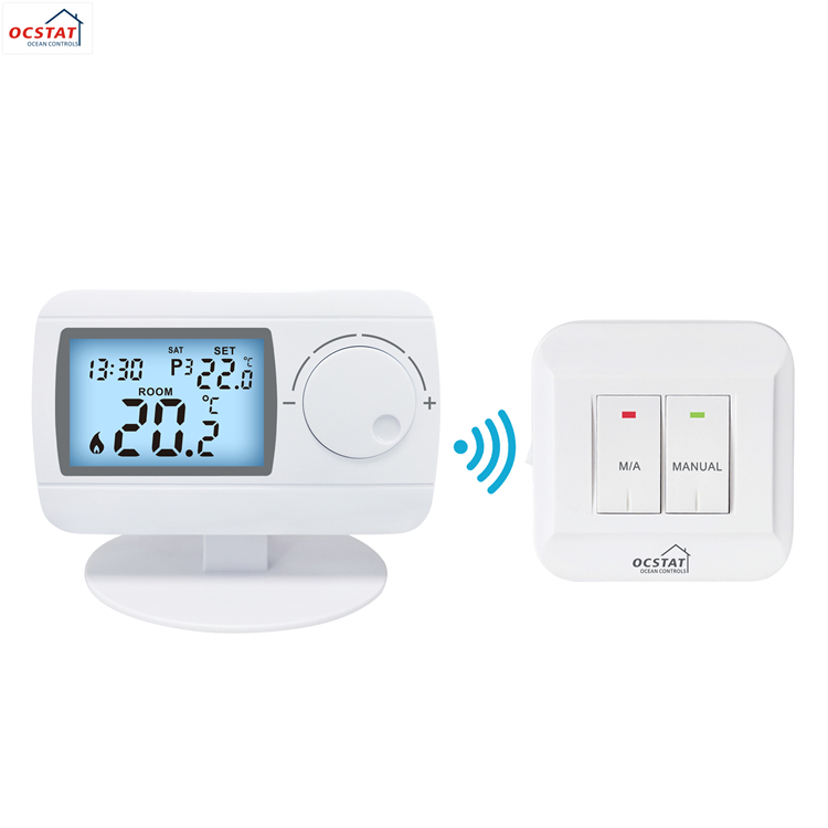 OCSTAT propose des services de thermostat d'ambiance RF personnalisables avec le numéro de modèle E7RF-L, fièrement fabriqué en Chine. Notre thermostat sans fil 230 V est conçu pour des applications polyvalentes, notamment les besoins en matière de thermostat de chauffage au gaz et de thermostat de chaufferie. Le produit présente une consommation d'énergie de 6 W et fonctionne à 230 V, garantissant des performances efficaces et fiables.