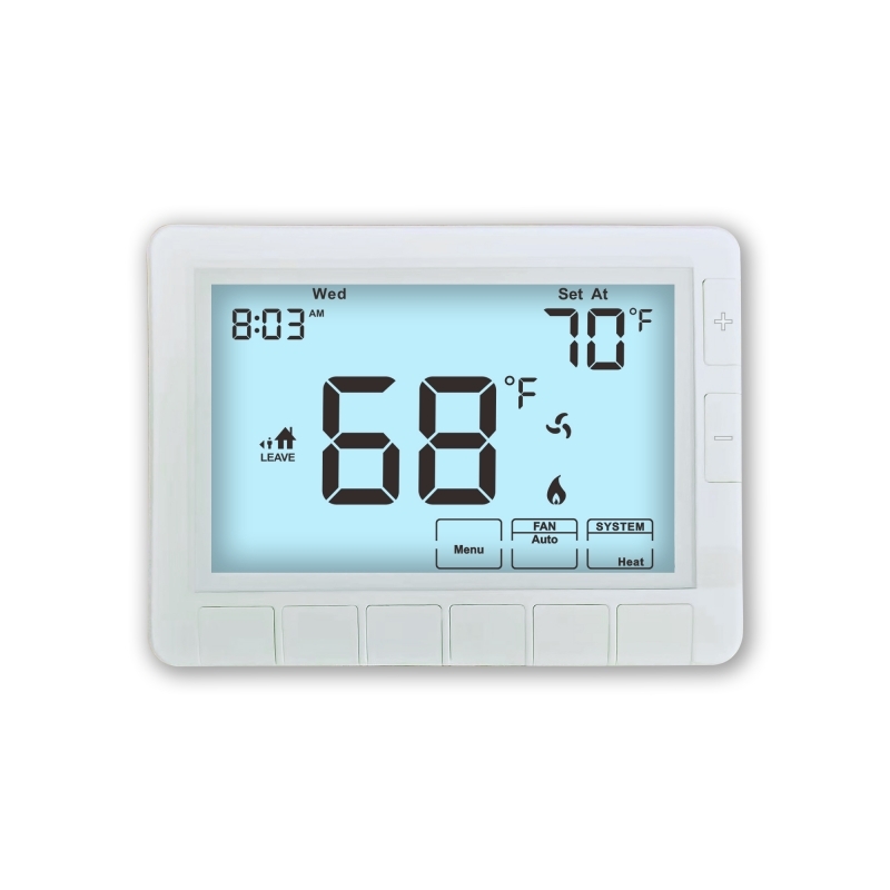 Conçu en mettant l'accent sur la convivialité et l'affichage clair des informations, le thermostat d'ambiance électronique dispose d'un grand écran de 8,18 pouces carrés. Cette grande surface d'écran fournit des relevés de température et des indicateurs d'état du système faciles à lire, garantissant que les utilisateurs peuvent surveiller et ajuster rapidement et avec précision les réglages. L'interface intuitive simplifie la programmation du thermostat et le fonctionnement quotidien, ce qui le rend accessible aux utilisateurs de tous niveaux d'expérience. Qu'il s'agisse de gérer le thermostat de chauffage au gaz d'une maison ou de contrôler un radiateur électrique industriel dans une installation commerciale, l'affichage clair améliore l'expérience utilisateur globale.