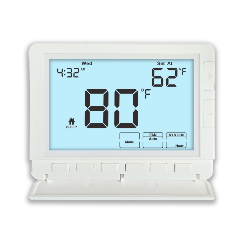 En résumé, ce thermostat d'ambiance électronique est un composant essentiel pour tout système CVC nécessitant un contrôle de la température précis, fiable et intelligent. Sa prise en charge de plusieurs modes de fonctionnement du système, sa compatibilité avec les systèmes conventionnels et les systèmes de pompe à chaleur, et ses désignations de bornes claires en font un choix polyvalent et convivial. Qu'il soit utilisé comme thermostat de chauffage au gaz, contrôleur de température intelligent ou thermostat de chaufferie, il offre des performances constantes et une efficacité énergétique, garantissant que votre environnement intérieur reste confortable toute l'année.