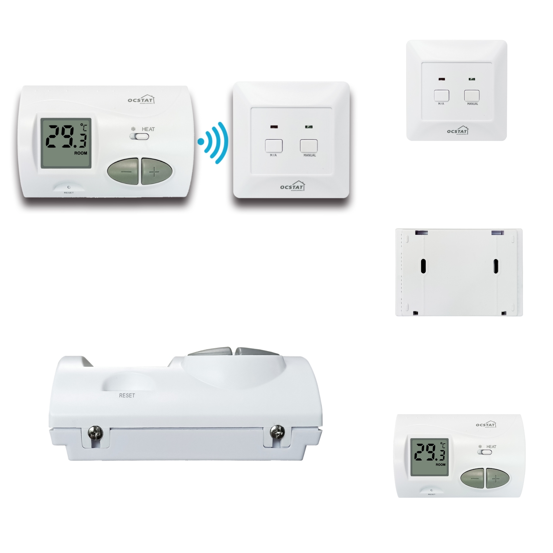 Le thermostat de chambre sans fil OCSTAT, modèle C3RF est un thermostat de chambre électronique avancé conçu pour fournir un contrôle précis de la température dans divers environnements.Ce produit combine fiabilité et technologie moderne.Certifié selon les normes CE, FCC et ISO, l'OCSTAT C3RF assure la sécurité et la qualité,répondant aux exigences internationales relatives aux thermostats numériques pour les pièces.